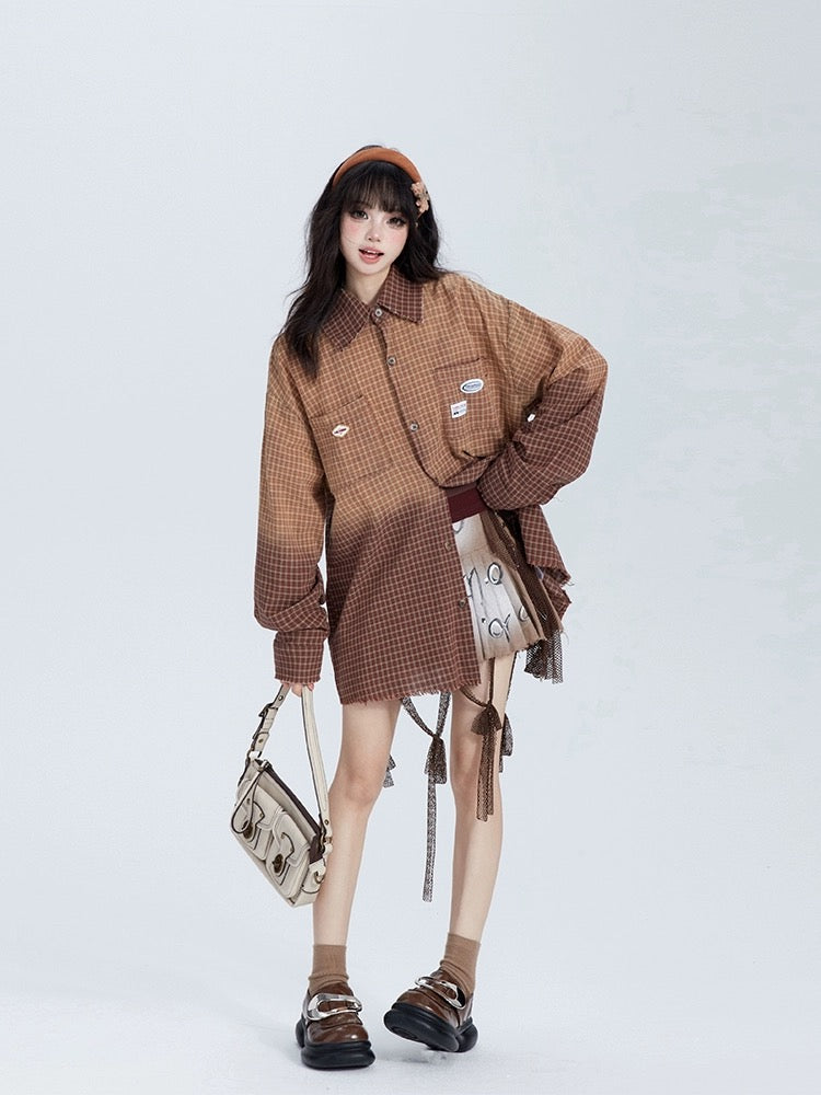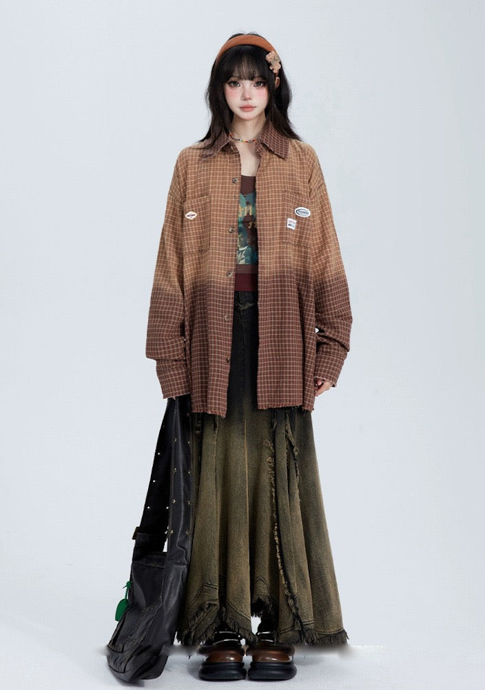 ヴィンテージチェックフランネルシャツは、クラシックなチェック柄とゆったりとしたシルエットが特徴のシャツです。肌触りの良いフランネル素材で、秋冬シーズンにぴったりのアイテムです。フロントボタンと胸ポケットがあり、カジュアルながらも機能性を兼ね備えています。袖口はボタンで調節可能で、さりげないアクセントを加えています。リラックスしたフィット感で、さまざまなスタイルに合わせやすい一枚です。