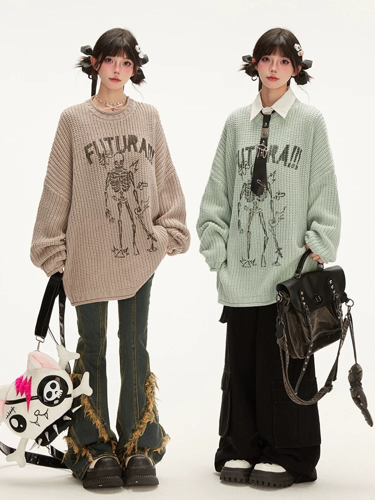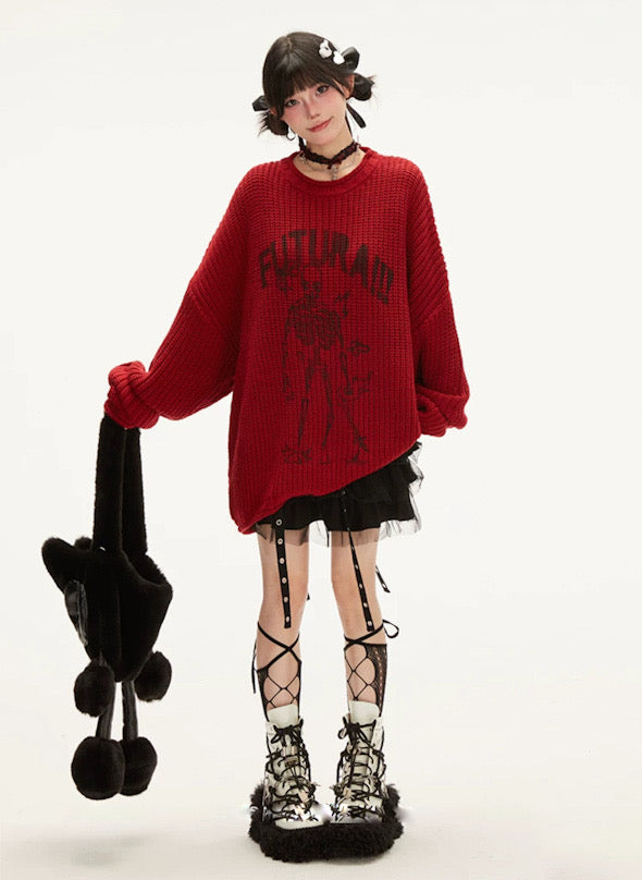 オーバーサイズ レッド グランジ プリント ニット│Oversized Red Grunge Print Knit