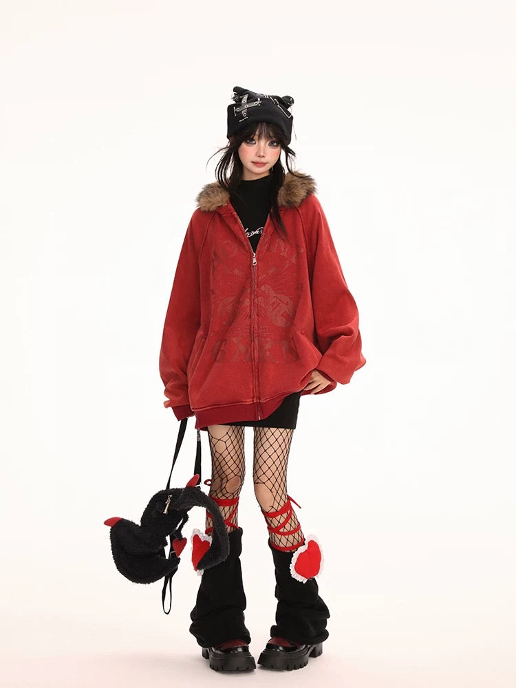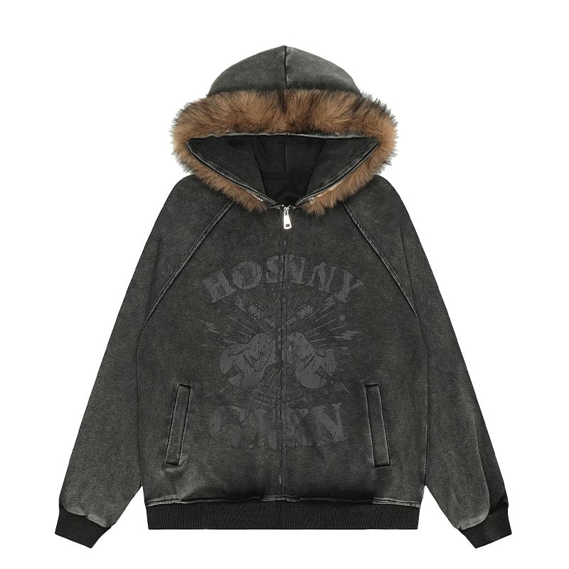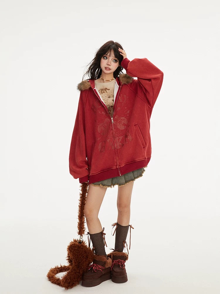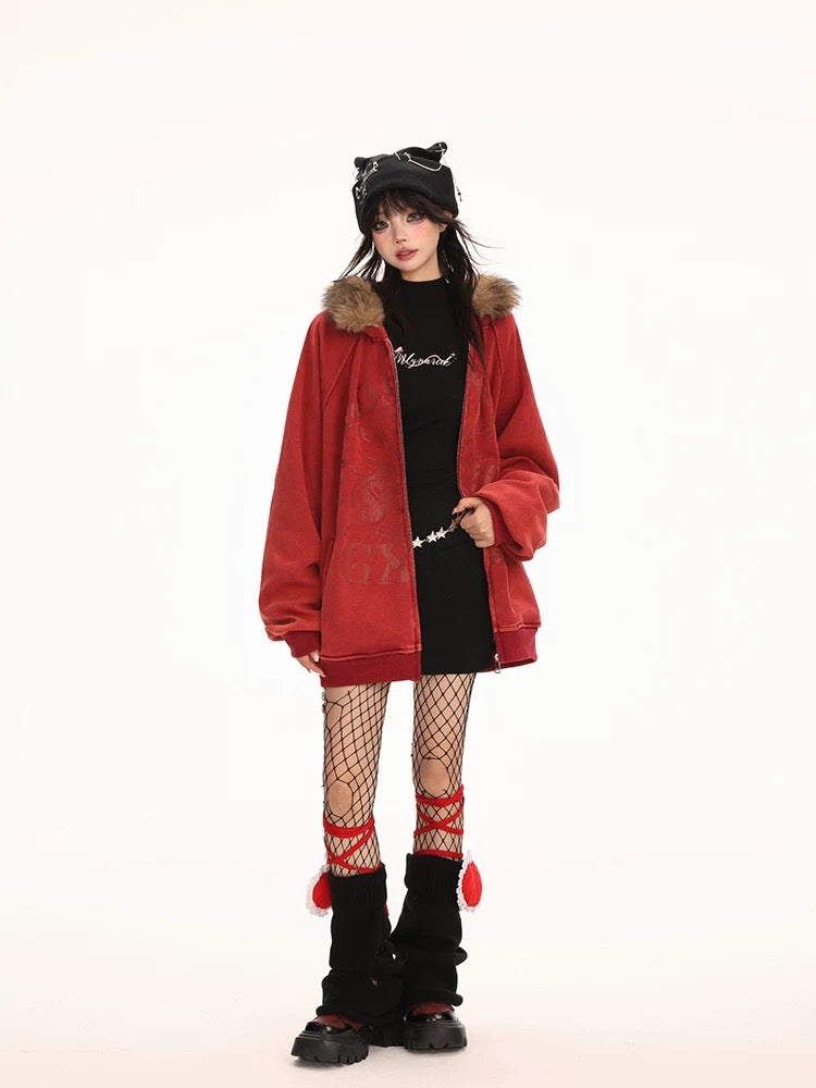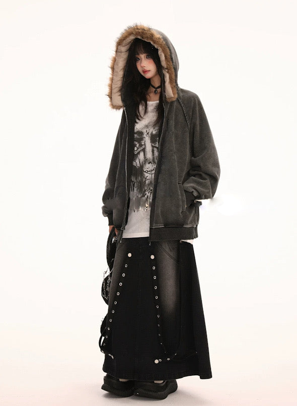 フワモコ ファー フード オーバーサイズ パーカー│Fluffy Fur Hood Oversized Parka"