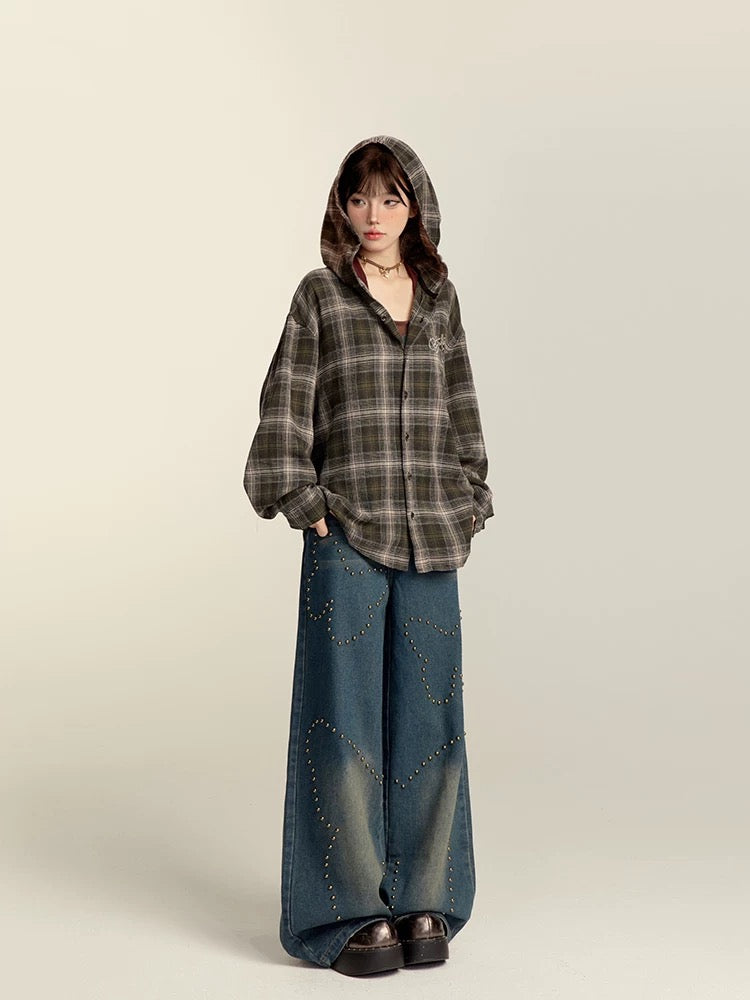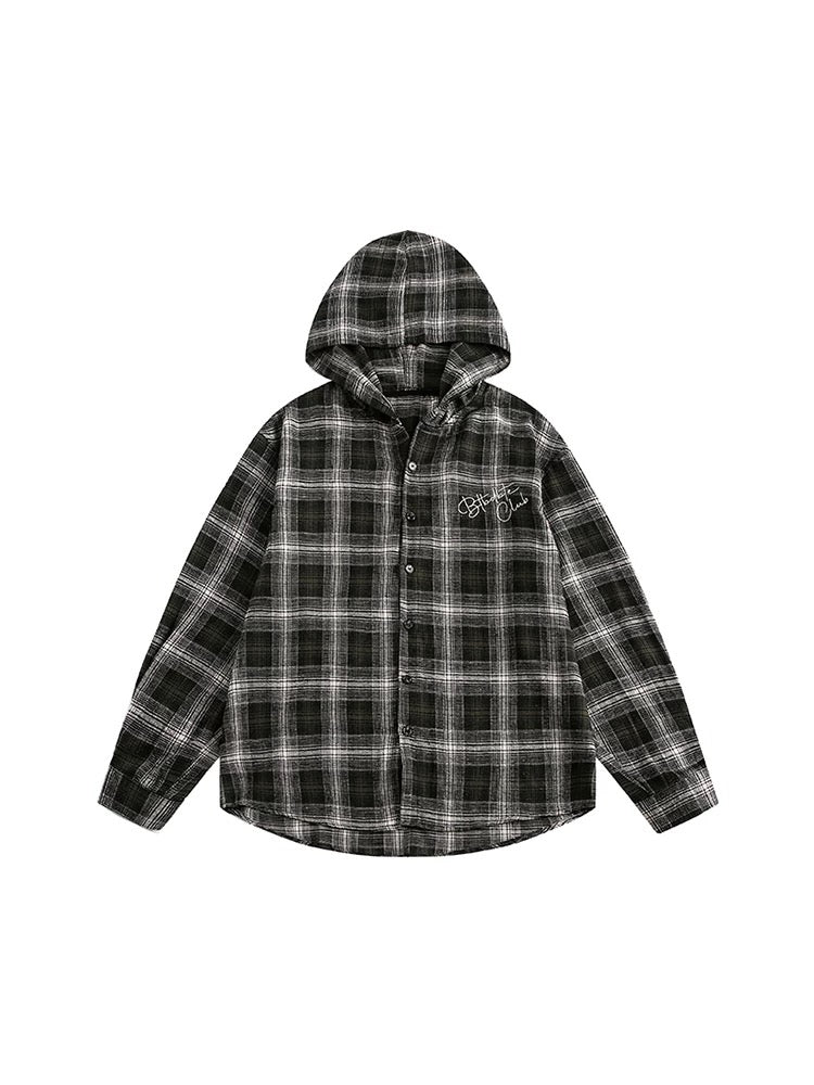ヴィンテージ感漂うチェック柄のボタンアップシャツは、リラックスしたシルエットが特徴です。柔らかな生地で、季節を問わず快適に着用できます。フロントには小さな刺繍が施されており、シンプルながらも個性的なアクセントを加えています。