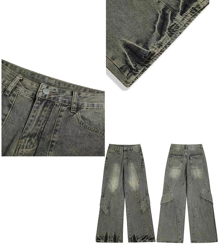 ビンテージ加工と大胆なワイドレッグデザインが特徴のデニムパンツです。トップスはクロップドスタイルやタイトフィットを選ぶことで、スタイリッシュなシルエットを強調し、バランスの取れた現代的な着こなしに仕上がります。